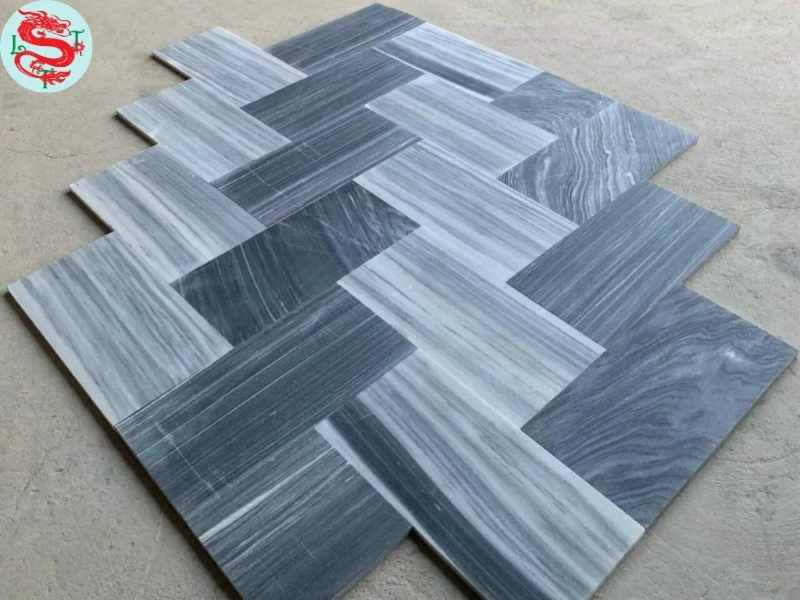 Kiểu ốp lát này có thể nói là khá phức tạp so với các kiểu ốp khác, nhưng chính những đường vân sọc tự nhiên trên bề mặt đá kết hợp với kiểu lát này lại mang đến sự độc đáo mà các vật liệu khác không làm được