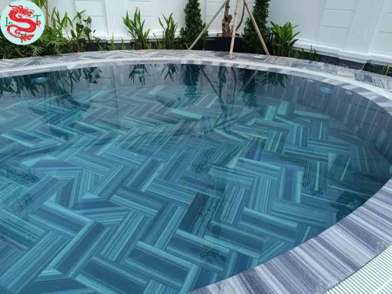 1. Ốp đá sọc dưa hồ bơi kiểu zíc zắc