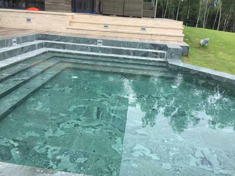 Đá xanh Thanh Hóa mài hone thường được sử dụng để lát nền hồ bơi, bậc thang và các khu vực xung quanh hồ. Màu xanh dịu nhẹ của đá mang lại cảm giác mát mẻ và dễ chịu, tạo nên một không gian thư giãn lý tưởng. Đồng thời, bề mặt mài hone giúp tăng độ ma sát, hạn chế tình trạng trơn trượt khi tiếp xúc với nước.