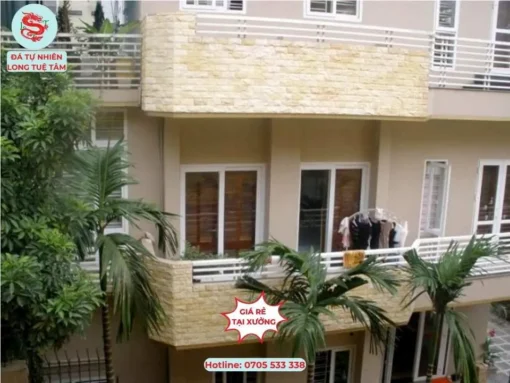Với gam màu vàng ấm và độ bền cao, đá bóc ốp tường rất phù hợp để ốp mặt tiền, cột nhà, tường rào hay tiểu cảnh sân vườn. Đây là vật liệu vừa thẩm mỹ, vừa bền chắc, đang được ưa chuộng trong các thiết kế ngoại thất mang phong cách mộc mạc, gần gũi thiên nhiên.